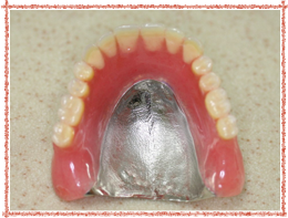 入れ歯の上あご部分を金属で作成することで薄くできる為、違和感が少なく発音などで有利になります。また熱伝導性がよいので温かい物や冷たい物の感覚が伝わり、食事がよりおいしく頂けます。